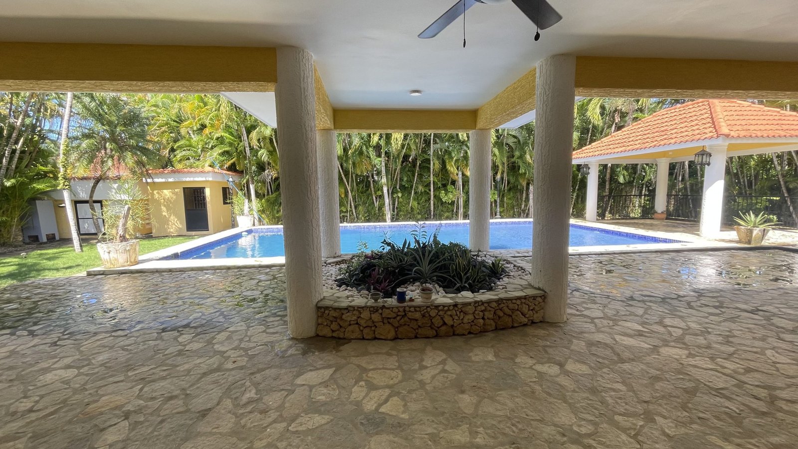Discover this incredible 3.5-bedroom, 3-bathroom villa located in a secure gated community in Sosúa, just a 5-minute walk from the beach. Nestled on a 1,200 m² lot, this home offers 600 m² of living space plus an additional 200 m² of covered terrace, perfect for outdoor living.